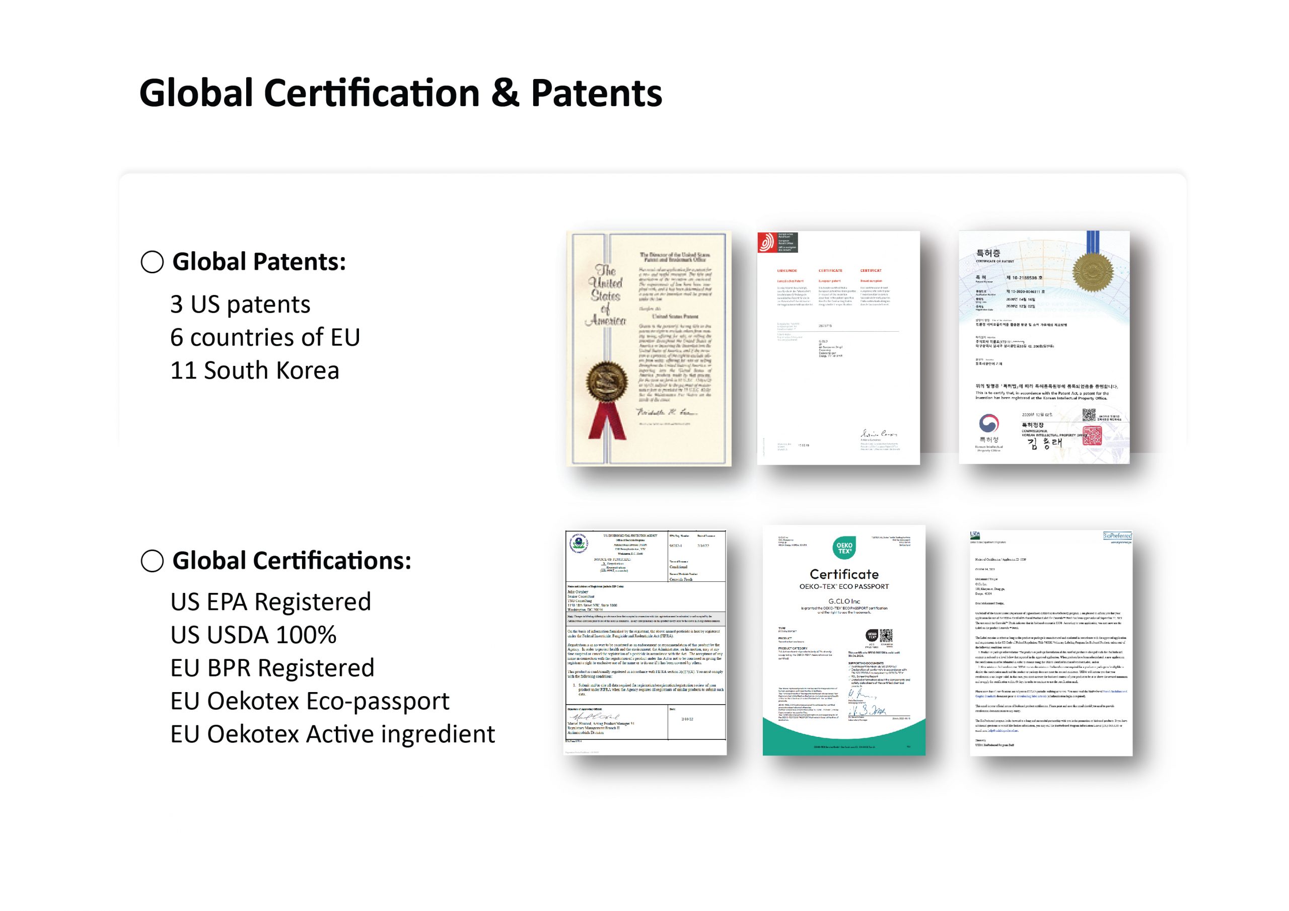 Antimicrobials for fabric treatment typically eliminate bacteria using heavy metals such as Nano-Silver which is harmful to the human body and environment. Its use is prohibited in Europe and the United States. The use of Ceravida Fresh is proven to be safe and is accepted in Europe and the United States.