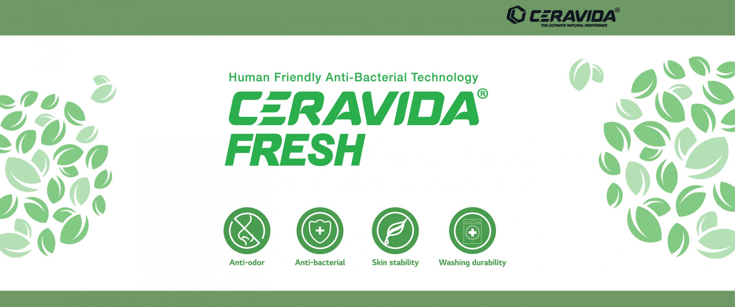 Ceravida Fresh is the fabric’s topical treatment to prevent and remove odor causing molecules and microbes.
